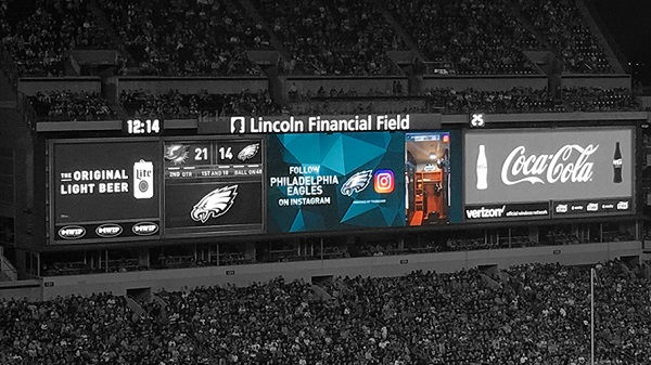 Tận dụng các mạng xã hội như Facebook, Instagram đang thông trị thế giới online, các đội thể thao như Philadelphia Eagles, San Francisco Giants và Seattle Sounders đã kết hợp với Tagboard để đưa những Story Instagrams của họ lên các màn hình quảng cáo digital ngoài trời tại nhiều sân vận động để quảng bá hình ảnh. Đồng thời cũng nhắn gửi thông điệp đến người hâm mộ không có điều kiện đến để theo dõi trực tiếp trận đấu có thể tìm kiếm thông tin về đội bóng yêu thích của mình thông qua mạng xã hội Instagram. Nhờ vào hành động này mà giúp họ có được lượng theo dõi hàng tháng tăng đến 20%