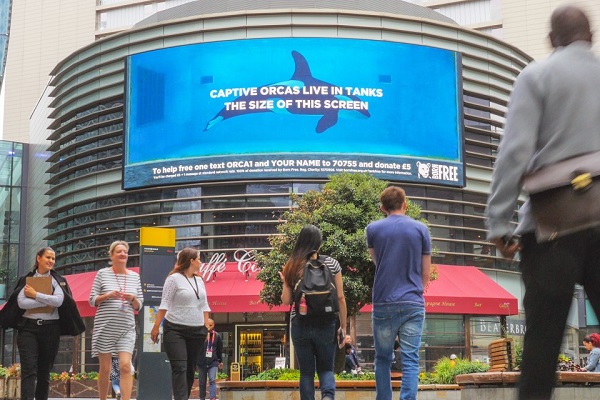 Sẽ có nhiều màn hình kỹ thuật số ngoài trời có hình dáng bể cá đặt tại nhiều thành phố khác nhau tại Anh, bên trên là hình ảnh chuyển động của những chú cá voi sát thủ. Mục đích là để nâng cao nhận thức của cộng đồng về việc cá nhiều cá voi sát thủ đang bị người ta săn bắt, giam giữ.