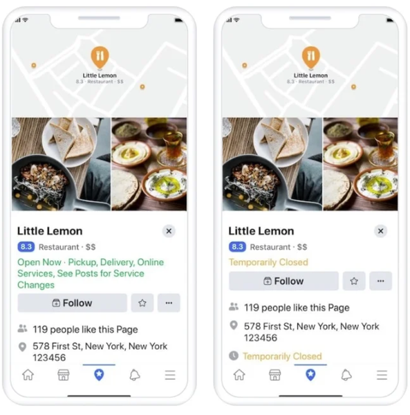 Các chú thích sẽ giúp khách hàng dễ dàng biết được tình trạng doanh nghiệp có đang hoạt động hay không – những dịch vụ nào họ có thể cung cấp – hay doanh nghiệp có đang tạm thời bị đóng cửa vì COVID-19 hay không. Cụ thể, một số trạng thái mà Facebook có trong mục này bao gồm: