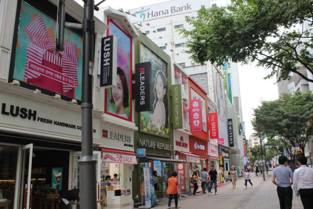Những tấm biển quảng cáo dày đặc khiến người nhìn có cảm giác choáng ngợp 3. Hàn Quốc: Kiểu mẫu nhưng vẫn độc đáoỞ Hàn Quốc, các doanh nghiệp, công ty, cửa hàng vẫn phải đảm bảo những yếu tố như thuần phong mỹ tục, văn hóa kinh doanh. Tại một số con phố mua sắm kiểu mẫu, biển hiệu phải tuân theo quy định về kích thước, còn màu sắc và font chữ vẫn đảm bảo được yếu tố thương hiệu của doanh nghiệp.