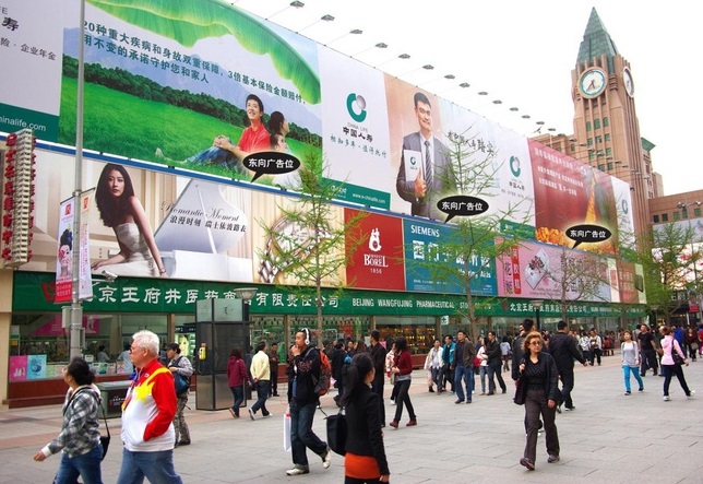 Một khu phố Nhật Bản với biển quảng cáo ngoài trời đa sắc màu Bạn sẽ cảm thấy mâu thuẫn tại sao quảng cáo theo khuôn khổ nhưng vẫn được tự do như vậy. Là do quảng cáo ngoài trời của Nhật Bản dù được thiết kế một cách thoải mái, thể hiện tối đa phong cách của sản phẩm, nhưng vẫn tuân theo quy định về quy hoạch không gian đô thị của đất nước. Việc đặt quảng cáo cũng cần phải đúng chỗ, sẽ không được đặt biển tại những khu vực cấm như di tích lịch sử, danh lam thắng cảnh, khu bảo tồn thiên nhiên, khu công viên cây xanh, nghĩa trang. Điểm đặc biệt của quy hoạch quảng cáo tại Nhật là phải hợp với cảnh quan chung của khu phố, thường là thiết kế theo một chủ đề nhất định, có sự hòa hợp, đồng bộ với nhau, phụ thuộc theo sản phẩm, dịch vụ kinh doanh của khu vực đó. Điều này sẽ thật tuyệt vời, bởi vì việc lộn xộn quảng cáo sẽ không diễn ra, bởi vì tất cả mọi biển quảng cáo đều hướng khách dàng dạo phố tới một dịch vụ hay sản phẩm đặc trưng của khu vực. Ví dụ như Harajuku hay Shinjuku, đây là hai khu phố kinh doanh về sản phẩm và dịch vụ cho giới trẻ, đến đây bạn sẽ được chìm đắm trong nhưng biển quảng cáo đa sắc màu, phong cách trẻ trung, cực bắt mắt. Quảng cáo ở Nhật Bản hút mắt người dùng bởi sự phá cách và ấn tượng, việc dạo phố, thăm thú các khu vực tại đây sẽ khiến bạn chẳng muốn rời, sẽ phải đi đến khi nào mỏi chân thì thôi. Và nếu bạn là một designer, ngắm quảng cáo tại Nhật biết đâu sẽ gợi ý cho bạn thật nhiều ý tưởng hay ho nào đó. 2. Trung Quốc: Quá đông, quá choáng ngợpĐến với Trung Quốc – đất nước láng giềng của chúng ta, bạn sẽ thấy choáng ngợp bởi số lượng biển quảng cáo khổng lồ được sắp xếp chi chít, dày đặc. Điều này cũng không có gì khó hiểu, Trung Quốc là đất nước đông dân nhất thế giới, doanh nghiệp cũng nhiều vô cùng, việc biển quảng cáo xuất hiện nhiều cũng là việc đương nhiên. Tuy nhiên quy định quảng cáo tại quốc gia này phảm đảo bảo được các yếu tố như: thiết kế phù hợp thuần phong mỹ tục, không sử dụng những hình ảnh nhạy cảm, gây phản phản cảm và cần lắp đặt biển đúng chuẩn kích cỡ và đúng nơi quy định theo quy hoạch của thành phố.