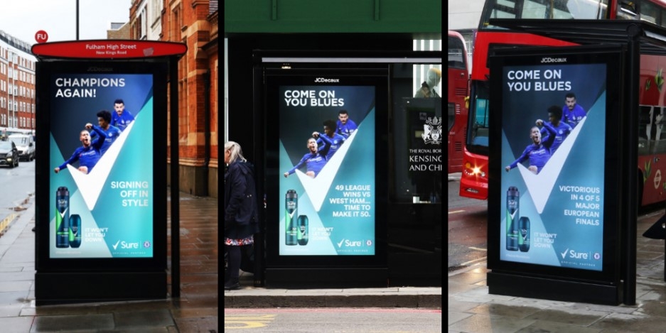 Sure Men đang sử dụng dữ liệu thời gian thực để thông báo về việc triển khai chiến dịch quảng cáo ngoài trời kỹ thuật số trên màn hình Frame và phát triển những quảng cáo sáng tạo có liên quan xung quanh cuộc thi đấu của các câu lạc bộ bóng đá Chelsea, Manchester City và Everton.