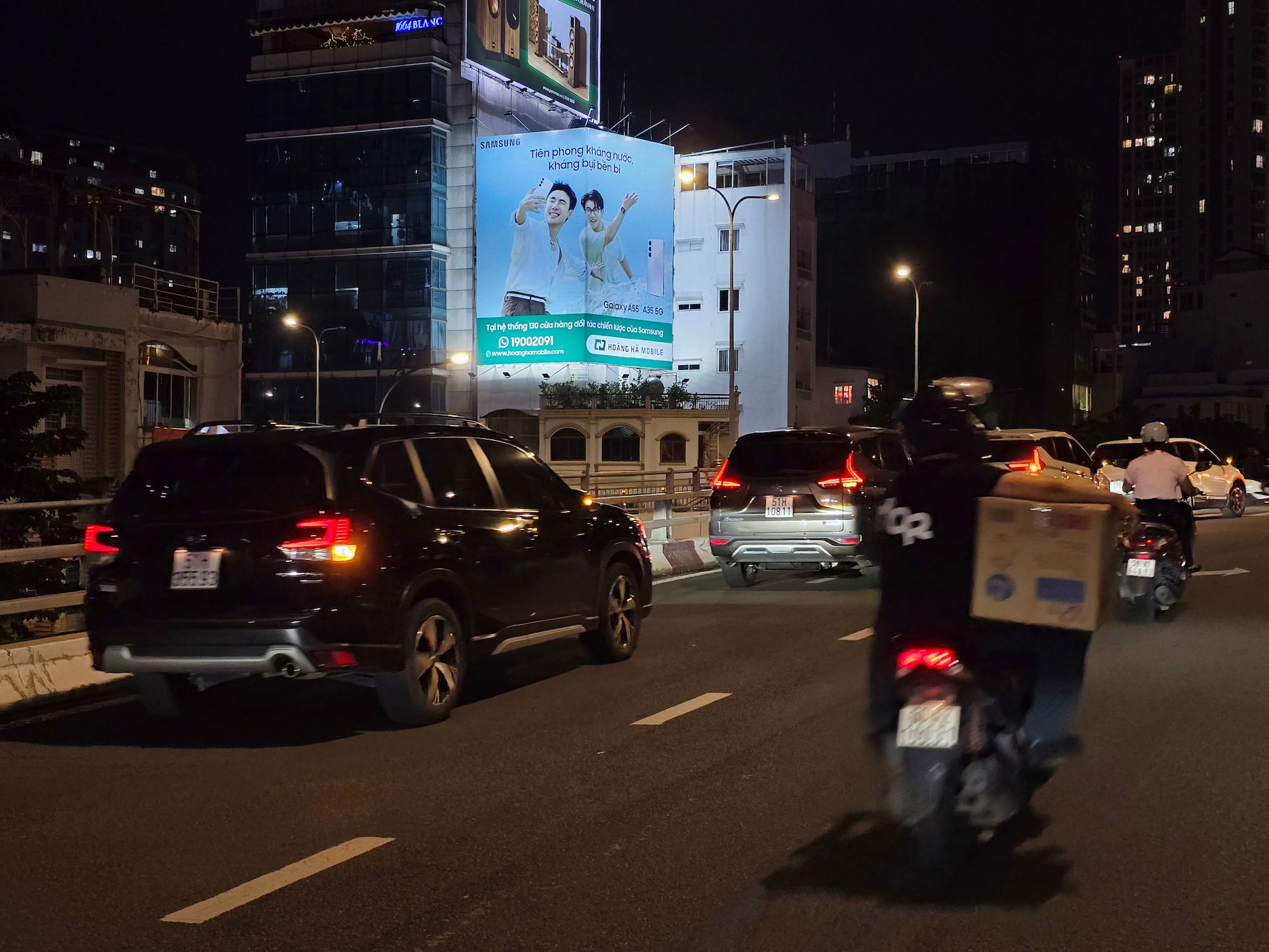 Billboard quảng cáo ngoài trời ốp tường nằm trên cầu Calmette, Tp HCM có kích thước rất lớn, lên đến 162m2, bảng này có view rất xa lên đến hàng km, có thể nhìn thấy rõ khi đứng chờ đèn đỏ ngã tư Calmette - Nguyễn Công Trứ.